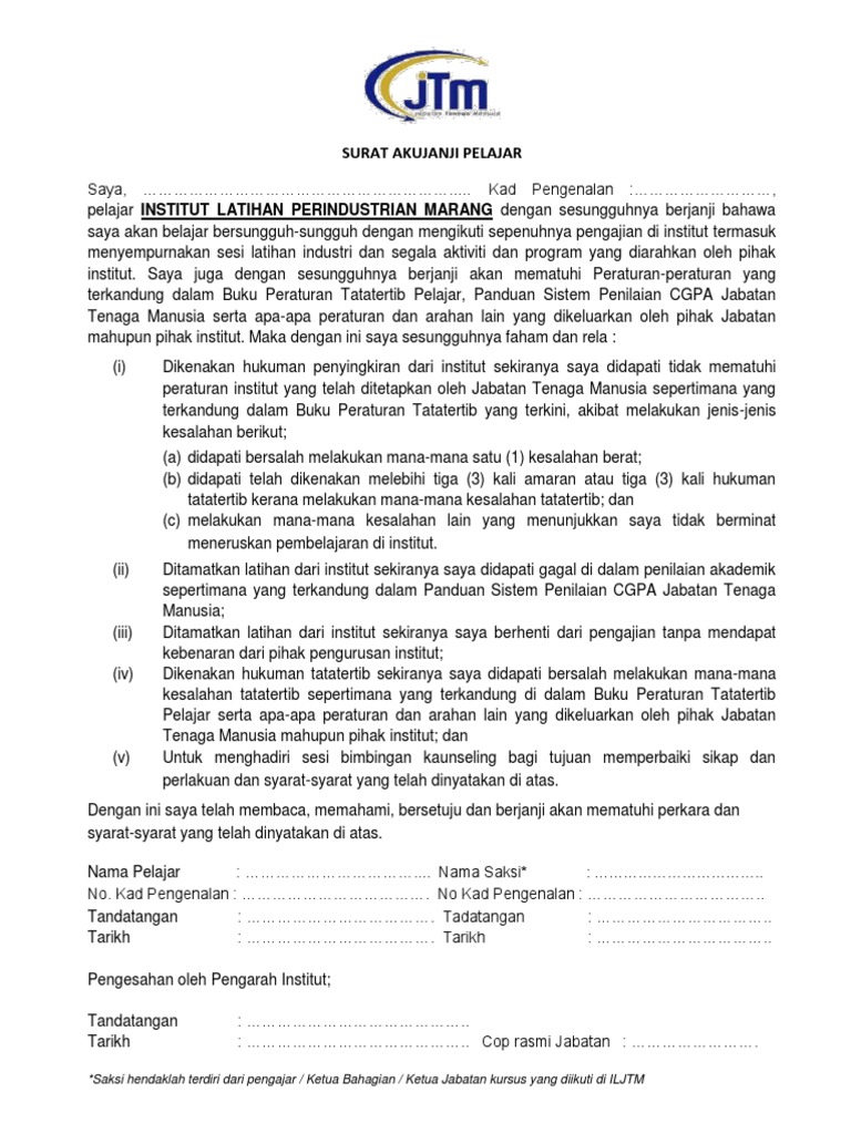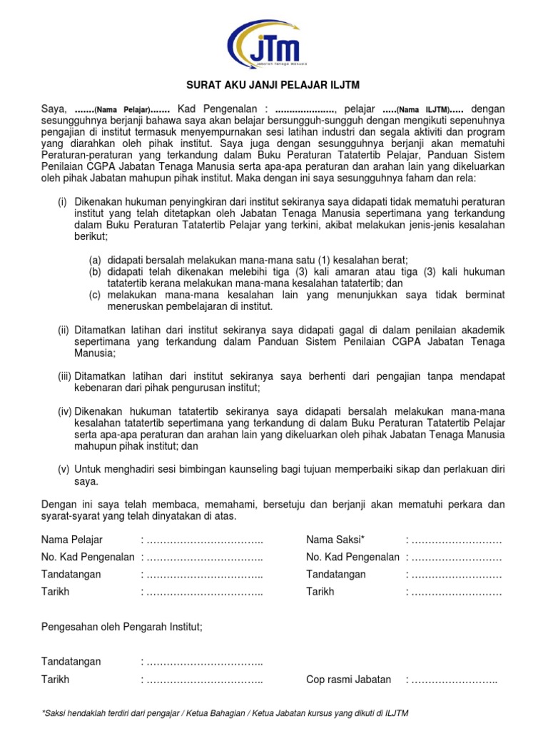 Surat Aku Janji Pelajar Iljtm Pdf