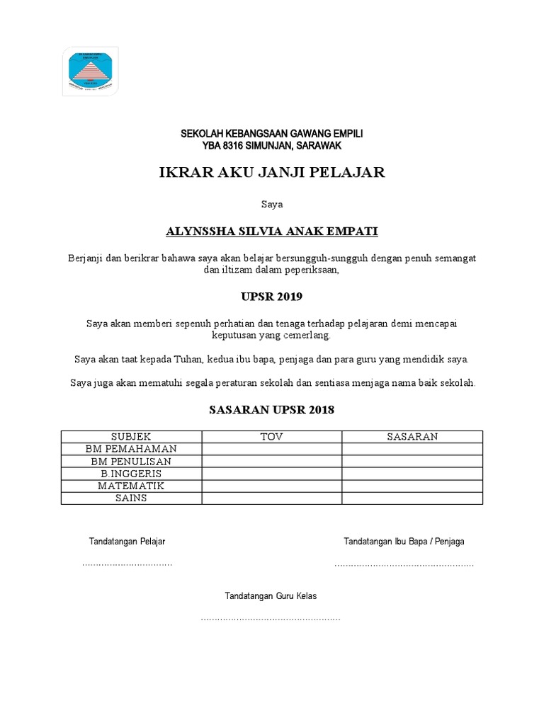 Surat Aku Janji Pelajar Madalynngwf