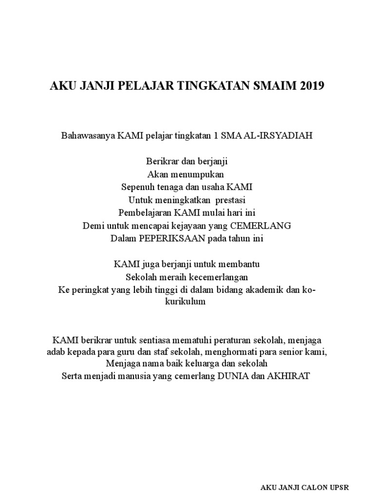 Aku Janji Pelajar Tingkatan Smaim 2019 Pdf