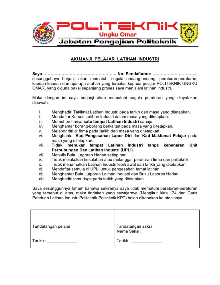 Akujanji Pelajar Latihan Industri Pdf